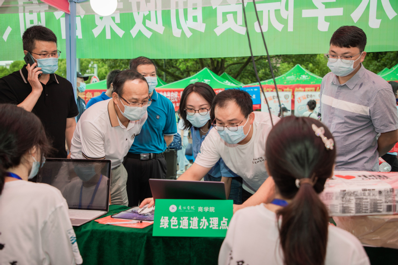 陈龙春一行沿着我校新生报到路线,体验新生报到程序,在报到点,陈龙春驻足“绿色通道”咨询服务点,详细了解我校“绿色通道”办理流程、学校暖心措施以及办理情况,并与正在办理绿色通的学生进行了亲切地交谈。