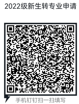 2. 要求转专业的学生在钉钉上填写《丽水学院2022级新生转专业申请表》,申请截止时间:2022年9月9日14:00。填写方式为:打开钉钉→选择“丽水学院工作台”→选择掌上办事(审批)中的“OA审批”→点击其他事项中的“2022级新生转专业申请”→填写申请表→提交。也可以用钉钉扫描以下二维码填写。