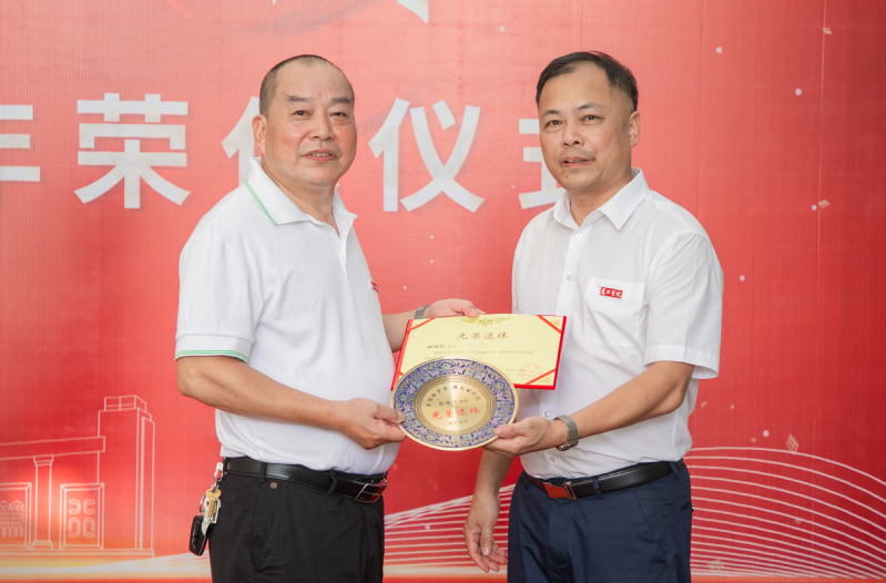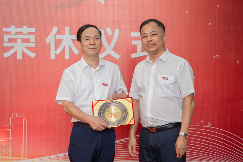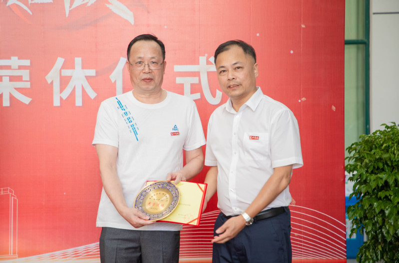 王利琳、郭献进分别为荣休教师颁发证书和纪念品。