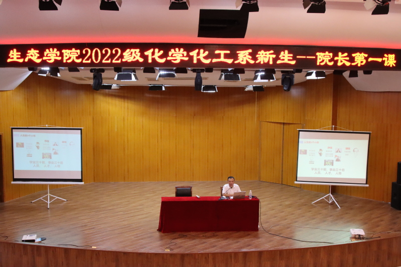 生态学院院长郭圣荣对学院的历史沿革、办学成就、师资力量、科研水平、专业发展、实验设备条件、学风建设以及学科竞赛成绩等方面分别作了介绍,并通过引用大量鲜活的学习、工作经历,深入浅出,引导同学们思考“为什么而学,为谁而学,怎么学”三个问题,希望同学们能够找准方向,做到自觉修身、严谨求知、善于实践、勇于创新。