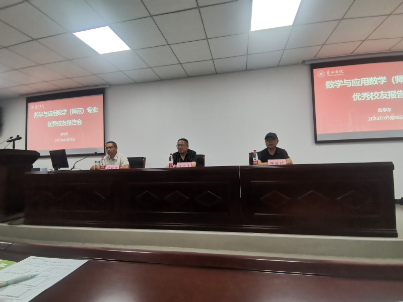 风雨沧桑雄心在,志存高远谱华章。我校数学与应用数学(师范)专业,已经为社会培养、输送了5000多名数学专业人才,涌现出了国际知名数学家、全国优秀教育工作者、杰出教师、优秀教师、优秀校长等一大批优秀校友。在第38个教师节即将到来之际,数学系邀请了林怀传、陈延付两位优秀校友回校作报告,数学与应用数学(师范)专业2022级全体新生,部分数学系老师参加报告会。
