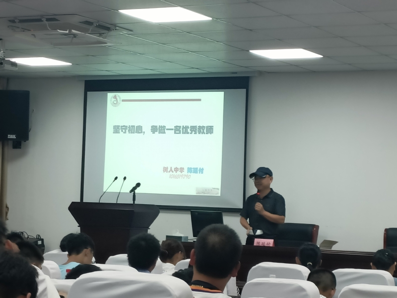 陈延付作了题为《坚守初心,争做一名优秀教师》的报告。他指出,作为一名老师,必须要以习近平总书记提出的“四有”好老师标准严格要求自己,以努力成为“四有”好老师为追求目标。他告诉同学们“当一名好的教师会让自己的人生更高贵”是自己的座右铭。成功没有捷径,唯有执着坚持,贵在坚守初心。他告诫同学们,要成为好的数学老师,必须要在数学教学的“准、实、活、简”四个方面下功夫;要成为优秀的数学老师,一定要认识到“教好”“研好”“写好”“讲好”的重要性。