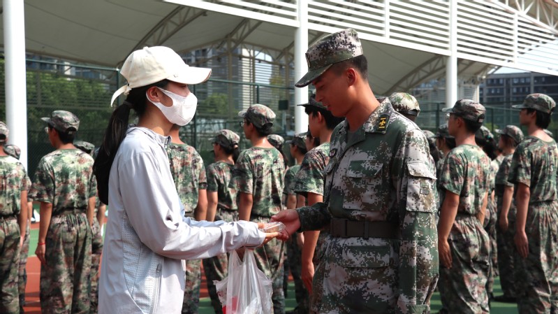 同时,校学生会精心策划和组织“军训送凉茶”活动,在东西区田径场设立免费的凉茶供应点,为炎炎烈日下辛苦训练的教官与新生送上一杯杯凉茶。一杯清甜,甜到内心深处,浓厚的爱校之情油然而生,让正在军训的教官和新生感受到来自学校的温暖和关心。
