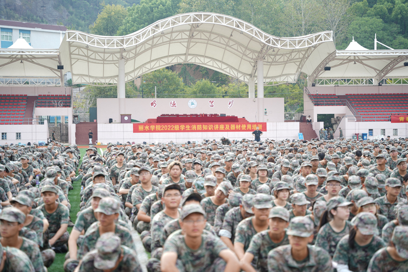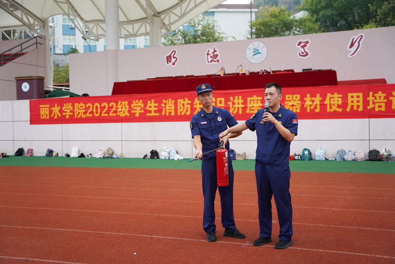 为提高同学们的消防安全意识和应急处置能力,9月12日下午,我校在西区田径场开展2022级学生消防知识讲座及消防器材使用培训,活动邀请了丽水市消防救援支队成员进行现场讲解及演示。