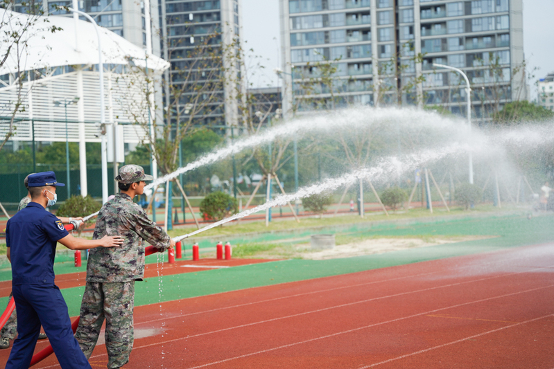 丽水市消防救援支队周教官结合真实案例,对灭火器种类的选择、逃生方法、报警注意事项等几方面进行了讲解,并与同学们进行了现场互动。随后,丽水市消防救援支队沈教官强调了同学们在校期间的用电注意事项,通过实物展示,沈教官对灭火器、水带等消防器材的使用方法、使用注意事项作了详细的讲解。讲解结束后,在教官的指导下,同学们进行消防器材使用的实际操作。