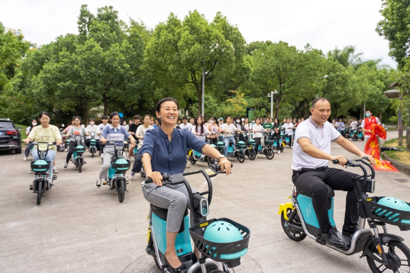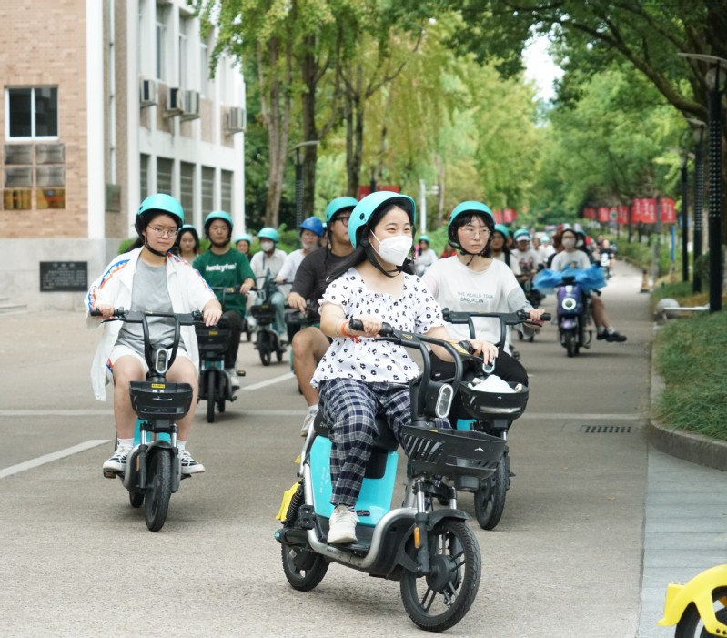 本次骑行从教13济世楼出发,沿途打卡金桥食府、体育馆、图书馆等校内地标,围绕学校骑行一圈。同学们热情洋溢,神采飞扬,在享受户外休闲带来的愉悦与放松的同时,对学校的地理环境有了更深入的了解。同学们一路欢声笑语,蓬勃向上的精气神,与沿途美景共同形成了一道靓丽的风景线。