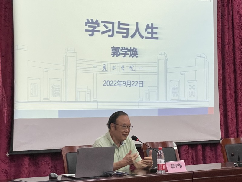 郭学焕围绕“学习与人生”的主题,从自身的求学经历出发,讲述了学习在人生中的重要性。他强调青年人要在大学时期打好专业学习基础,找到自己的兴趣,树立理想。学习更是伴随终身的大事,只有通过不断学习才能为理想信念提供强大定力和充足动力。他希望同学们能保持读书学习的习惯,也多多尝试文学创作,才不负如今多元文化交融的时代。