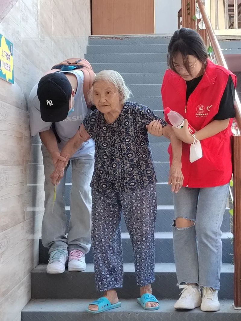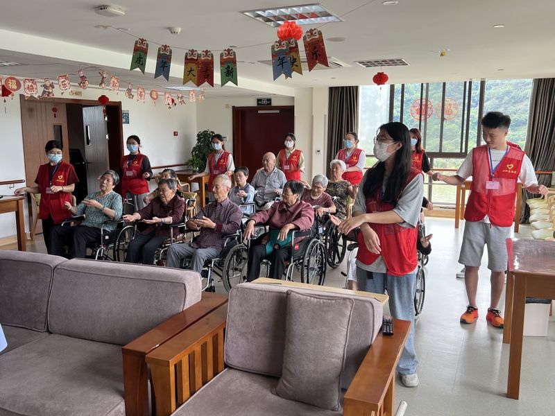 生态学院师生志愿者前往敬老院看望慰问老人们。师生们怀着诚挚之心,带着慰问品来到敬老院,老人们热情欢迎同学们的到来,他们的到来使原本寂静的敬老院充满了欢声笑语,呈现出一派其乐融融的景象。“没有共产党就没有新中国……”当志愿者拿出五星红旗时,一位91岁高龄的爷爷情不自禁地唱起了红歌,这位爷爷见证了祖国的复兴,他用质朴的语言向志愿者们讲述了过去的艰苦岁月,赞美新中国成立以来的辉煌成就,感叹如今美好生活的来之不易,更表达了对祖国和党的一腔热爱,让志愿者们深受感触。
