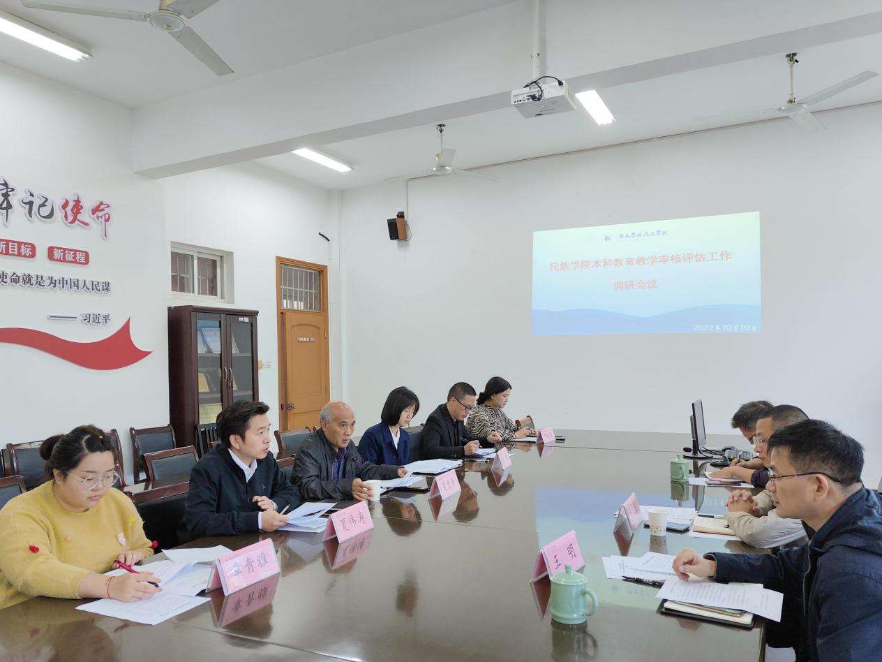 在民族学院,彭兵指出,审核评估是对学校本科人才培养乃至整体工作的全面检验,是促进学校人才培养质量提高和整体发展的重要机遇,二级学院要把迎评作为手段和动力,把改进提高、形成长效机制作为推进整改建设工作的根本目的。为顺利推进评估工作,需要做到“三个一”:一是转变一个中心,即要关注“以教为中心”转变为“以学为中心”,不断加强教学研究、深化教学改革,探索适合时代发展需求、符合人才成长规律、符合国情校情的人才培养之路。二是推动一个配合,即教育教学一体化,寓育人于各个教学环节、师生日常交往之中,以第一课堂为主体,第二课堂为辅,紧紧围绕人才培养方案,实现教育与育人同频共振。三是实现一个提升,即抓住发展关键点,学校通过大力引进高层次人才,意在在教学实践中发现科学研究的真问题,通过科研为教学提供给养,抓住高校人才培养的“双引擎”,全面提升人才培养质量。