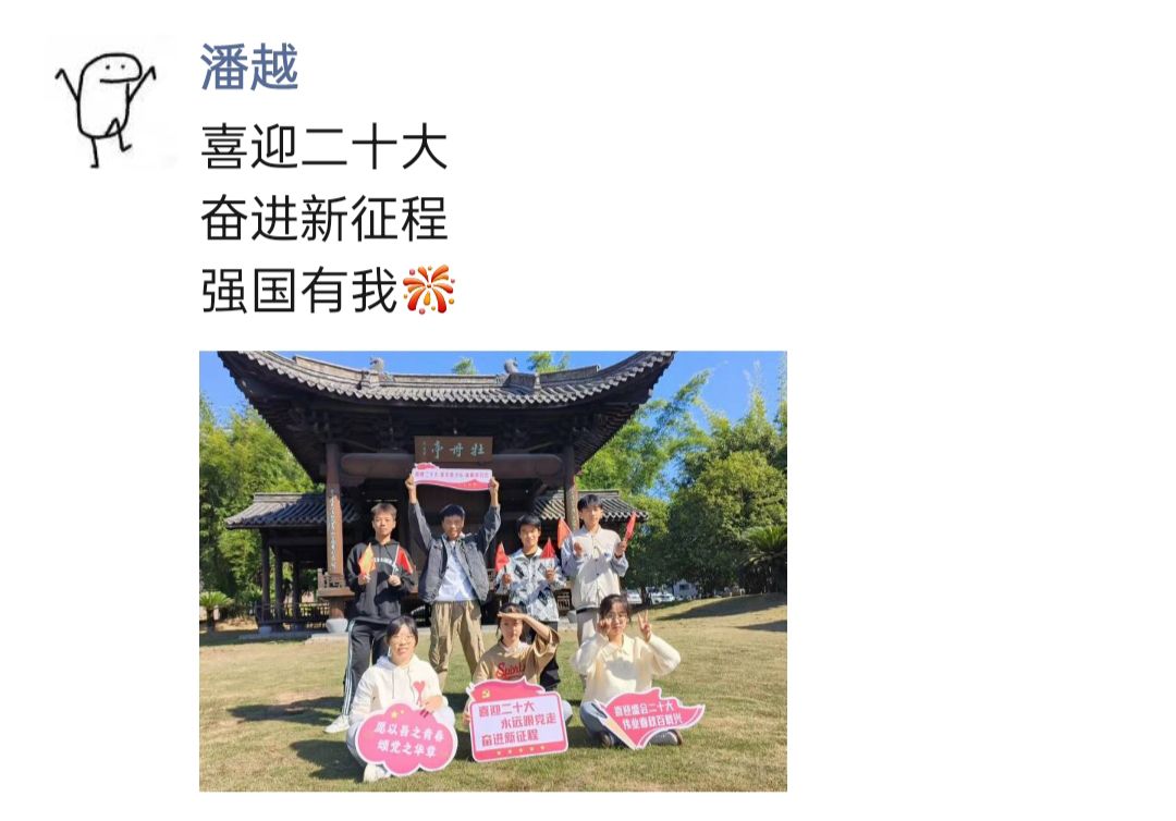 党的二十大即将胜利召开,我们倍感振奋。”在本次活动中,同学们纷纷表示,活动内容丰富,很有参与感,在答题、画海报与打卡等有趣活动中不知不觉接受了一次深刻的爱国爱党教育。在今后生活学习中,将进一步践行初心使命,把个人的“小我”融入到祖国的“大我”中,争做与时代同频共振的新时代青年。