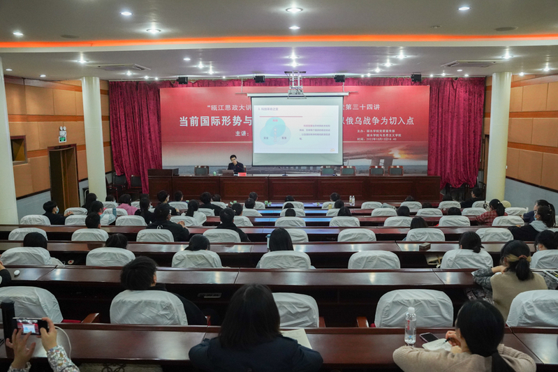 10月12日晚上,“两山”大讲堂第三十四讲暨“瓯江思政大讲坛”第十讲在学生事务中心一楼报告厅举行。温州大学马克思主义学院副院长吴志敏教授应邀为我校师生作主题为《当前国际形势与中国外交战略——以俄乌战争为切入点》的专题报告。