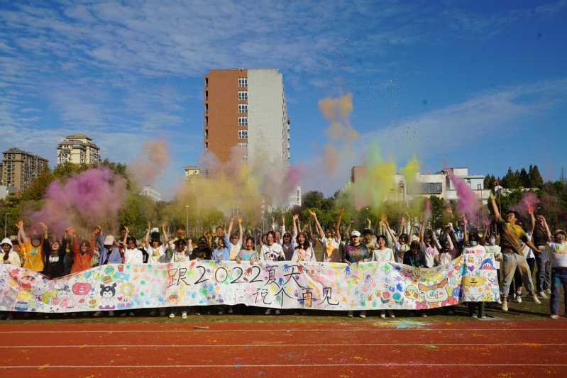 此次“彩虹跑”从东区操场出发,沿途打卡牡丹亭、济世楼(教13)、东门花坛、金桥食府共五个彩色站,最终回到操场,共计1.6公里。每经过一个彩色站,工作人员会向奔跑者泼洒彩虹粉,以示祝福。150人组成的队伍汇成一片“流动”的彩虹色海洋,成为校园里一道亮丽的风景线。同学们激情洋溢,神采焕发,纷纷冲向终点,留下了热爱运动,追逐绚烂的青春印记。