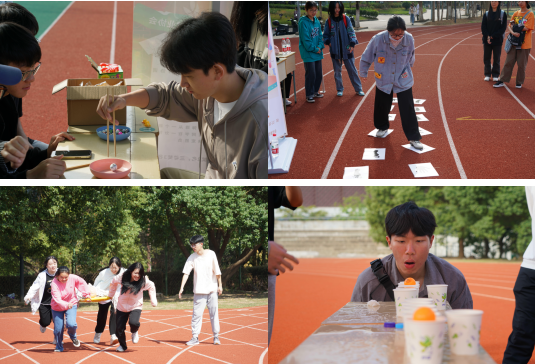 在“彩色之旅”的起终点,医学院七大协会联合开设了极速救援(担架竞速)、投壶、一分钟竖硬币、趣味乒乓球、玻璃弹珠、你画我猜、手忙脚乱等多个趣味运动项目。同学们互帮互助,全力以赴,操场上欢笑不断。