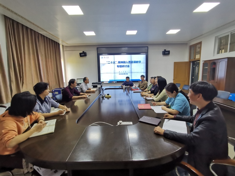 10月24日,马克思主义学院在靖逸楼三楼会议室召开党的二十大精神融入思政课教学专题研讨会。