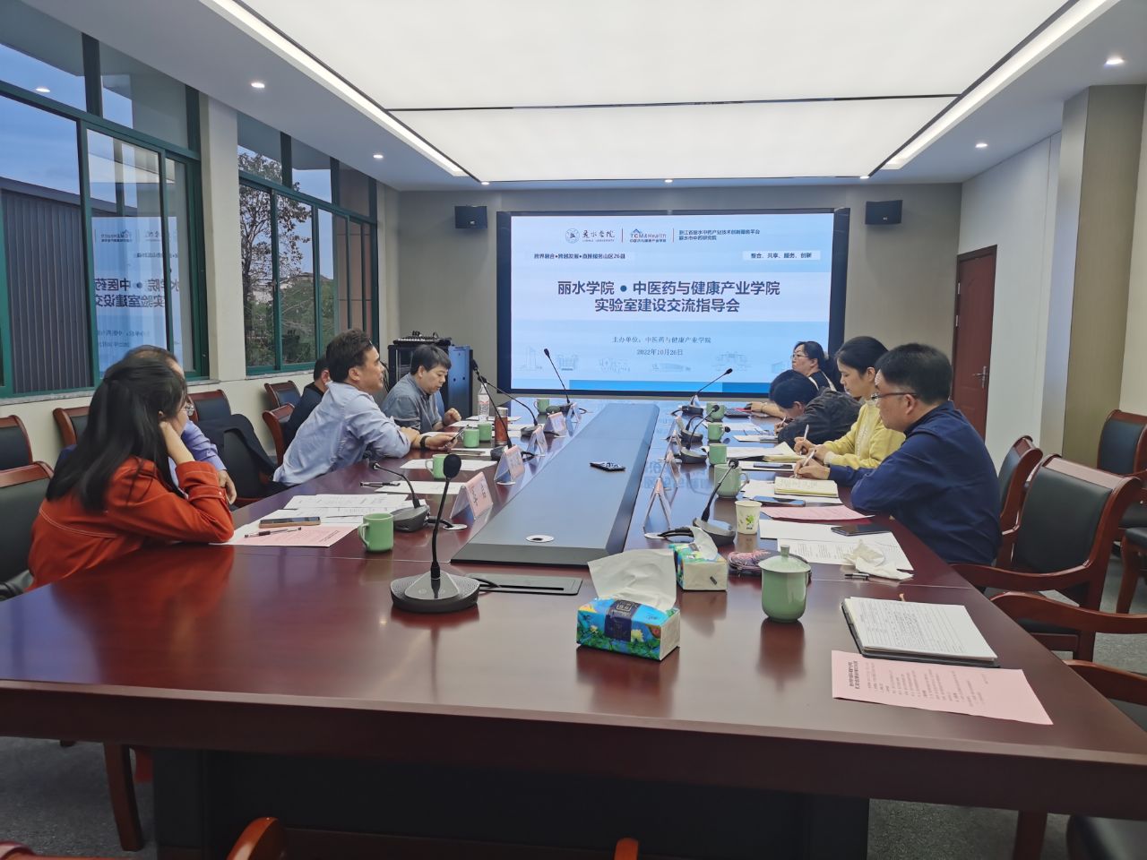 会议邀请了浙江大学、浙江中医药大学、浙江工业大学、丽水市质量检验检测研究院、丽水市疾病预防控制中心等单位的实验室建设专家对中医药与健康产业学院现有实验室和新建实验室的建设进行交流指导。
