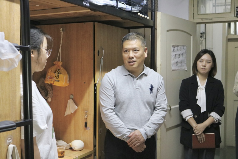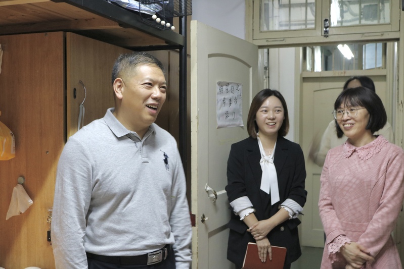 天气渐凉,绿茵场上,各项比赛进行得如火如荼,绿茵场外,校党委副书记叶华松来到教师教育学院的寝室慰问学生,教师教育学院相关负责人陪同。