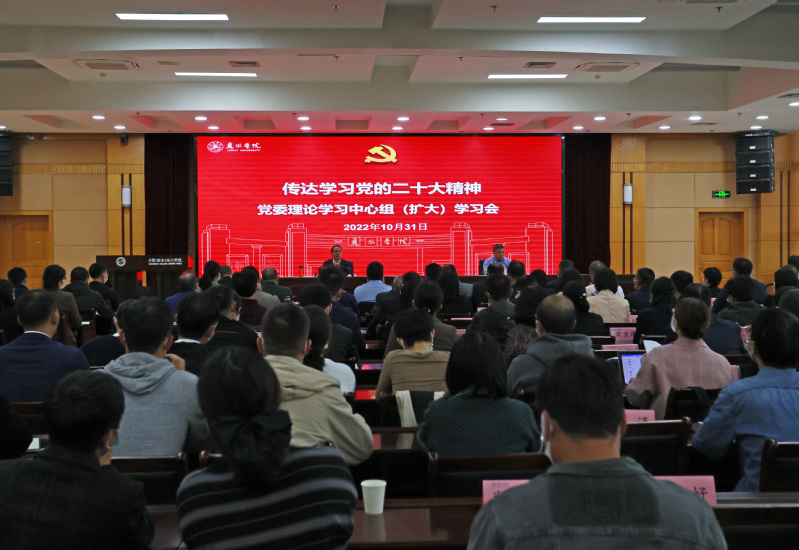 10月31日下午,我校召开党委理论学习中心组(扩大)学习会,传达学习党的二十大精神和省委、市委领导干部会议精神,对全校学习贯彻党的二十大精神进行部署。校党委书记王利琳出席会议并讲话,校领导郭献进、蒋黎红、鲁剑伟,校党委委员王赳、廖峰、赵卫川出席,校党委副书记叶华松主持会议。