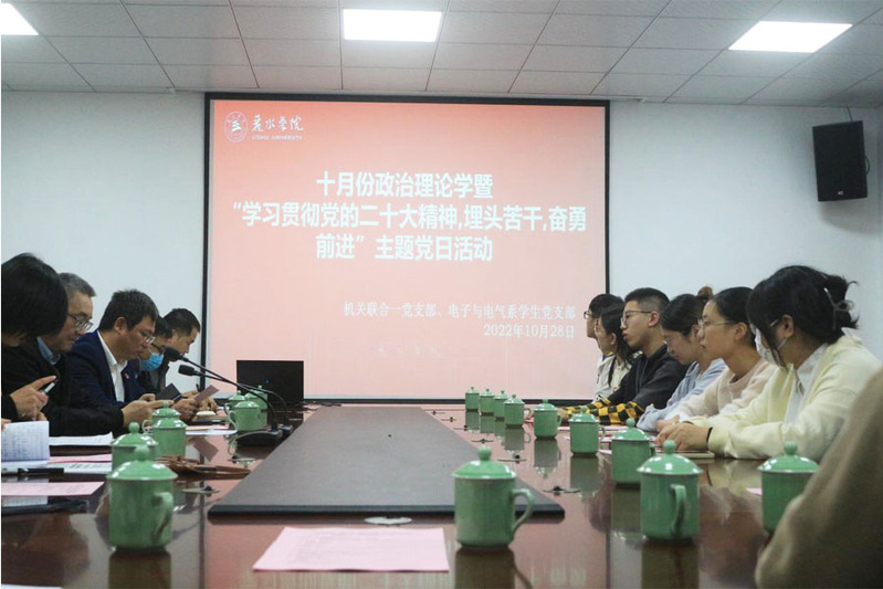 为学习贯彻党的二十大精神,10月28日下午,机关联合一党支部与电子与电气系学生党支部在成大楼一楼会议室联合开展“学习贯彻党的二十大精神,埋头苦干,奋勇前进”主题党日活动。