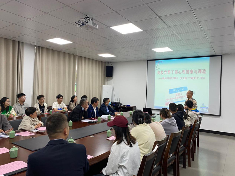 随后,丽水市第二人民医院原副院长夏朝云主任医师给师生党员作了《高校党群干部心理健康与调适》专题讲座。讲座从实际案例出发,讲授了科学面对困难挫折的方法,从而避免让极端负面情绪侵蚀自己的心灵,锻炼出坚强的意志。