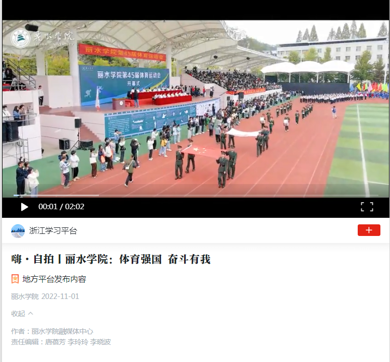 11月1日,学习强国浙江平台刊发了我校举行体育运动会的消息。
