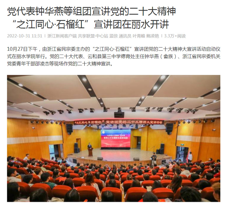 10月31日,浙江新闻客户端刊发了“之江同心·石榴红”宣讲团在我校开讲的消息。