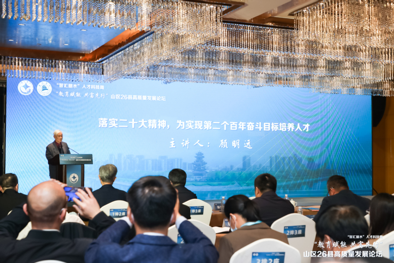 活动现场,北京师范大学教授顾明远、张斌贤,中国科学院生态环境研究中心主任欧阳志云研究员,中国药科大学副校长孔令义教授,浙江省教育学会会长韩平等众多教育领域专家、学者线上线下齐聚一堂,围绕党的二十大报告中提出的“实施科教兴国战略,强化现代化建设人才支撑”,以“教育·共富”融合发展为主线开展学术研讨,携手探索教育助力山区共富发展新途径,奋力打造共同富裕美好社会山区样板。