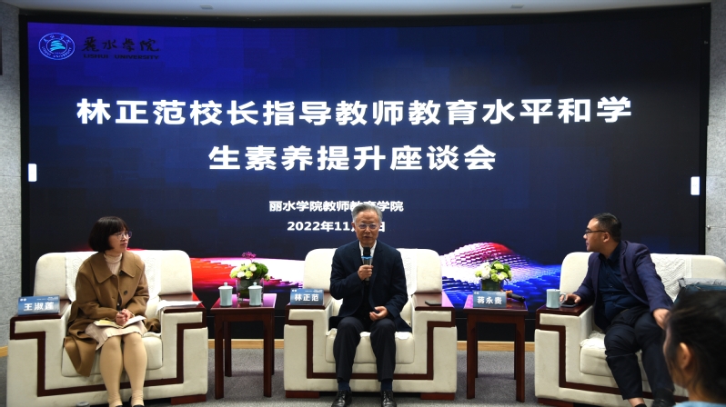 近日,丽水市举办“教育赋能,共富先行”山区26县高质量发展论坛。期间,教师教育学院邀请浙江省教育学会常务副会长、杭州师范大学校长林正范教授莅临指导,就教师教育水平和学生素质提升与师生开展座谈。杭州师范大学经亨颐学院副院长蒋永贵陪同,教师教育学院相关负责人主持、教师代表参加。