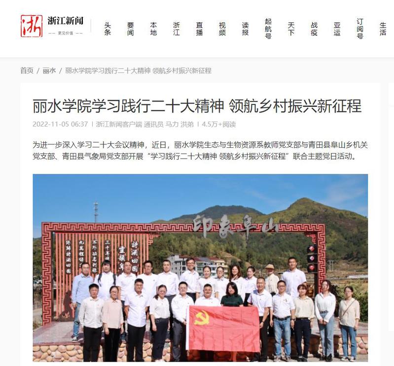 11月5日,浙江新闻刊登了我校生态与生物资源系教师党支部开展“学习践行二十大精神 领航乡村振兴新征程”联合主题党日活动的消息。