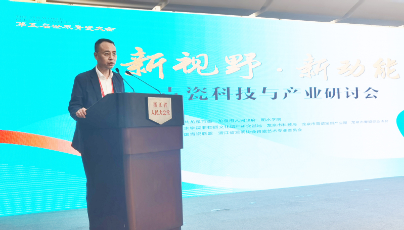 汪亚明在致辞中表示,我校在助力青瓷产业发展上不遗余力,携手龙泉开展了紧密合作。依托中国青瓷学院、浙江省2011龙泉青瓷协同创新中心、浙江省非遗研究基地等平台,在青瓷创新人才培养、关键技术攻关、非物质文化遗产传承以及共建省级龙泉青瓷传统工艺工作站、工作坊和创建省级龙泉青瓷文化传承生态保护区等方面取得了显著成效。我校一批教授、学者秉承守正创新的理念,通过对宋韵青瓷传承,对传统工艺进行改良和合理的再设计、再创造,用新材料、新技术、新工艺、新产品践行“科技、时尚、绿色”新定位,为青瓷注入更多科技含量、时尚元素、情感纽带,推动青瓷文化产业实现传统向现代的创造性转化。