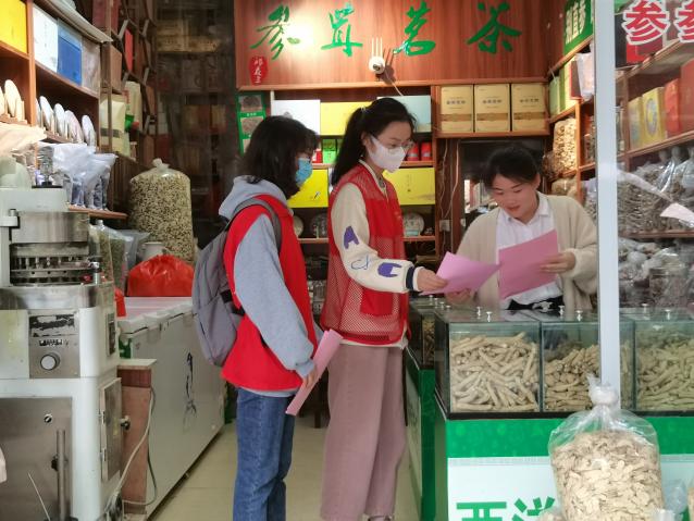 在浙西南农贸城,身穿红马甲的马院学子成了一道靓丽风景线,他们向商户们发放党的二十大精神宣传单,并用通俗易懂的语言为商户讲解介绍与他们相关的经济、教育、医疗、民生等内容,宣传党的二十大精神。