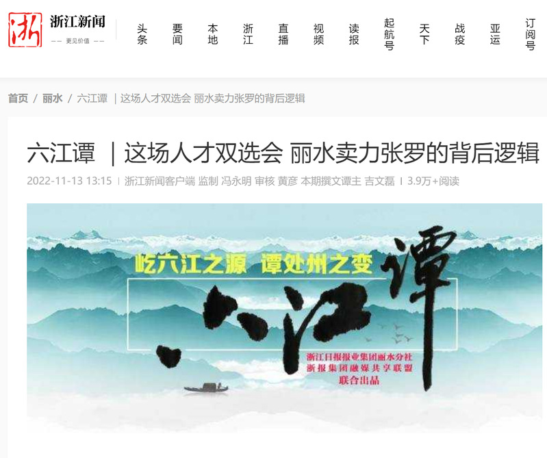 11月13日,浙江新闻客户端报道了于市体育中心开展举办的第三届丽水市全国大学双选会,邀请近百名意向丽水就业博士,与我校展开“一对一专项交流”的消息。