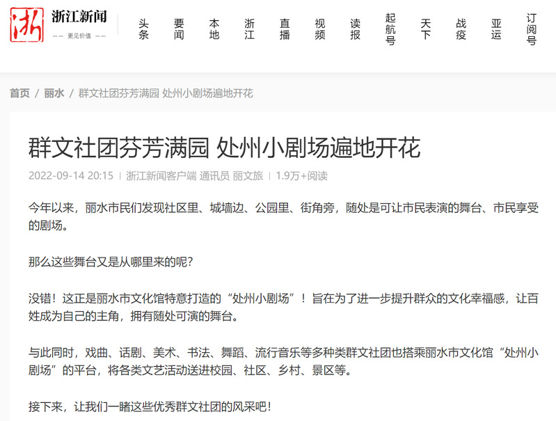 9月14日,浙江新闻客户端展示了我校清远剧社的风采。