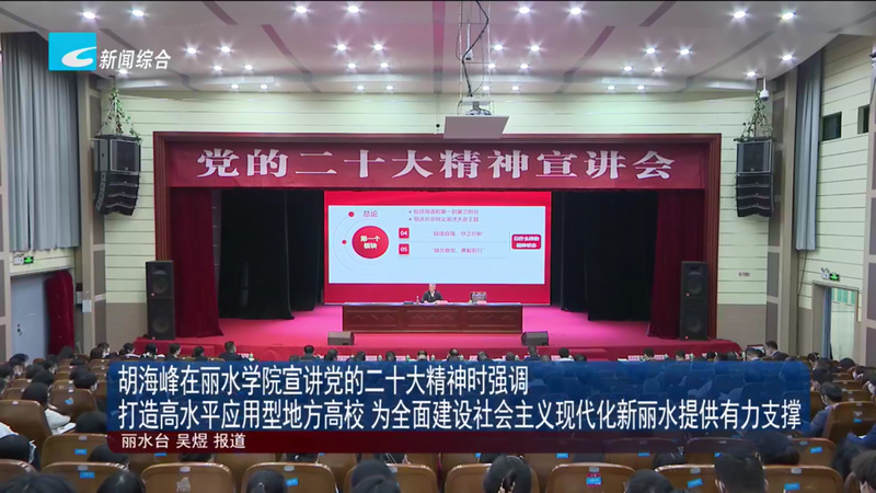 11月9日,丽水电视台新闻综合频道播出了市委书记胡海峰在我校宣讲党的二十大精神的消息。
