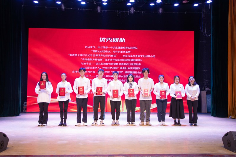 会上,校团委负责人宣读了学校2022年大学生暑期社会实践表彰文件。先进个人、优秀团队、优秀调研报告、优秀指导教师、优秀实践基地、优秀组织奖代表上台接受表彰。