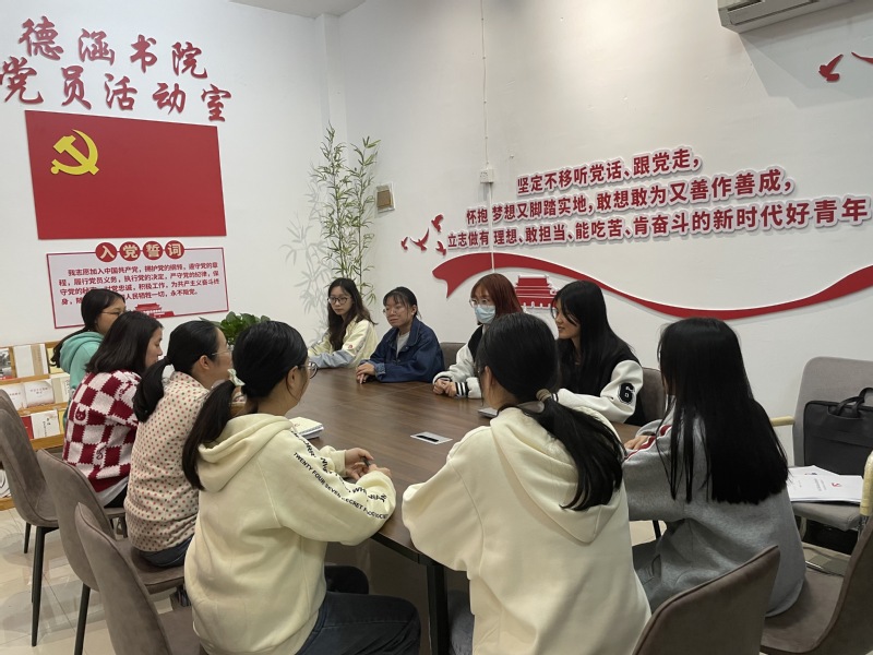 德涵书院建立党员活动室,设立红色文化读书角,广泛开展阅读原著、重温经典、专题学习等活动,依托“德涵悦读会”、“党员夜读”等多种形式和载体,开展高效深入的理论学习,进一步提升学生党员政治理论水平和党性修养。