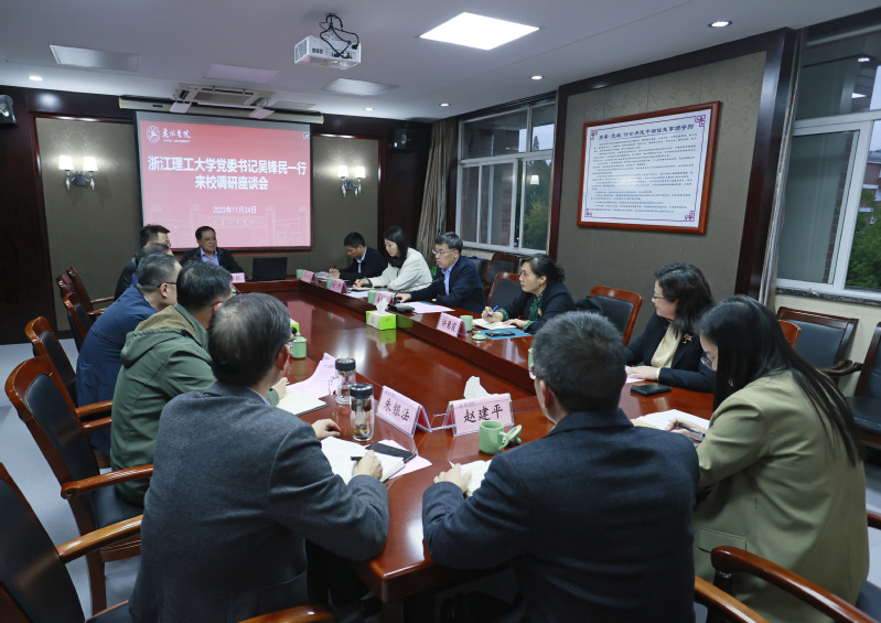 11月24日下午,浙江理工大学党委书记吴锋民在副校长许慧霞的陪同下来校调研。校党委书记王利琳、副校长汪亚明,校党委委员廖峰、赵卫川等接待了吴锋民一行。