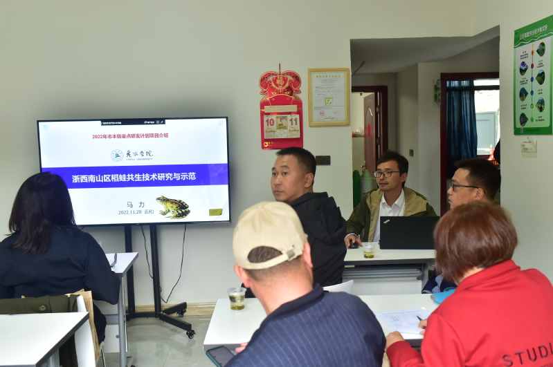双方共同参观我校马力老师“百博进百企”的合作企业——云和清江生态龟鳖专业合作社和丽水市博士创新站建站企业——云和县金乌岭家庭农场基地。马力和企业负责人卜伟绍在田边、会议室内对稻鳖、稻蛙综合种养的养殖方法、养殖效益、注意事项、品牌建设、销售网络构建等方面做了深入讲解。
