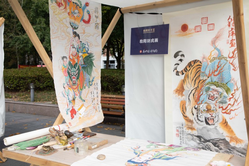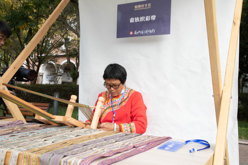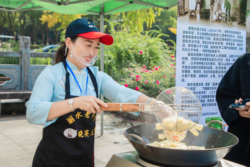 活动现场,有松阳高腔演绎、木偶戏表演,还有麦秆扇、棕榈制品、手工胡琴、黑陶等的展示,更有盐卤豆腐、灯盏盘、王井状元饼等小吃现场制作和品尝……松阳匠人用惊艳的嗓音和手心的温度传承技艺,一件件非遗作品展示着松阳人民代代相传的智慧和松阳文化的根和魂。