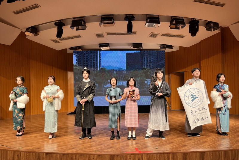 文学之风在沉淀中厚积薄发,经典之声响彻民族学院。“黄沙百战穿金甲,不破楼兰终不还”,诗朗诵《红绿融合赋中文》,声音铿锵有力、富于激情;身着军装的退伍学生身姿挺拔、神采昂扬,将英姿飒爽、凛然伟岸的军人形象刻在观众心中;从鲜嫩可口、香郁袭人的庆元香菇到青如玉、明如镜、声如磬的龙泉青瓷,《香菇始祖吴三公》《琴兰王树英——云和木玩的前世今生》《偶遇烧饼店》《再见畲凤飞》《寻觅龙泉之音》《秦少游醉爱丽水土烧》等剧目深入挖掘丽水本土特色文化;《蝴蝶梦——张玉娘的爱情故事》以穿越的形式演绎爱情故事,讲述女词人张玉娘和才子沈佺的爱情悲剧。精彩纷呈的节目让观众仿佛置身于瓯江流域,沉浸式领略瓯江文化之美。