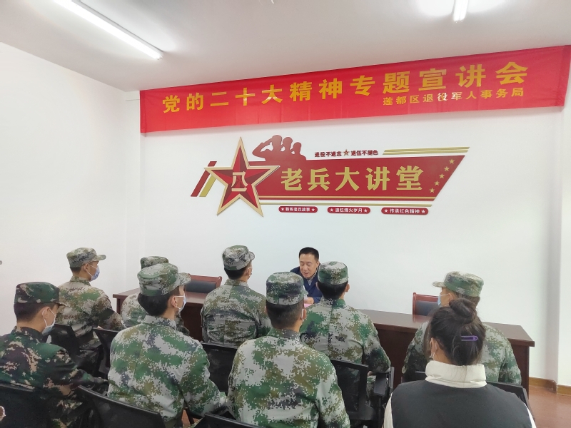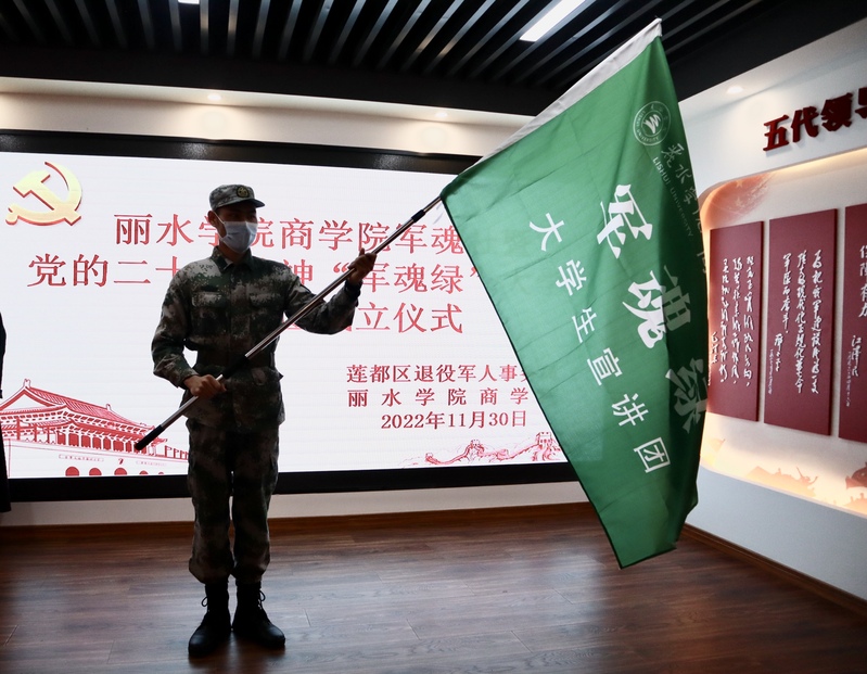 为学习宣传贯彻党的二十大精神,强化思想引领,充分发挥退役大学生军旅经历优势,宣讲党的二十大精神,宣传国防教育知识,激发大学生参军入伍热情。11月30日上午,商学院军魂社暨党的二十大精神“军魂绿”大学生宣讲团成立仪式在莲都区退役军人事务局举行。