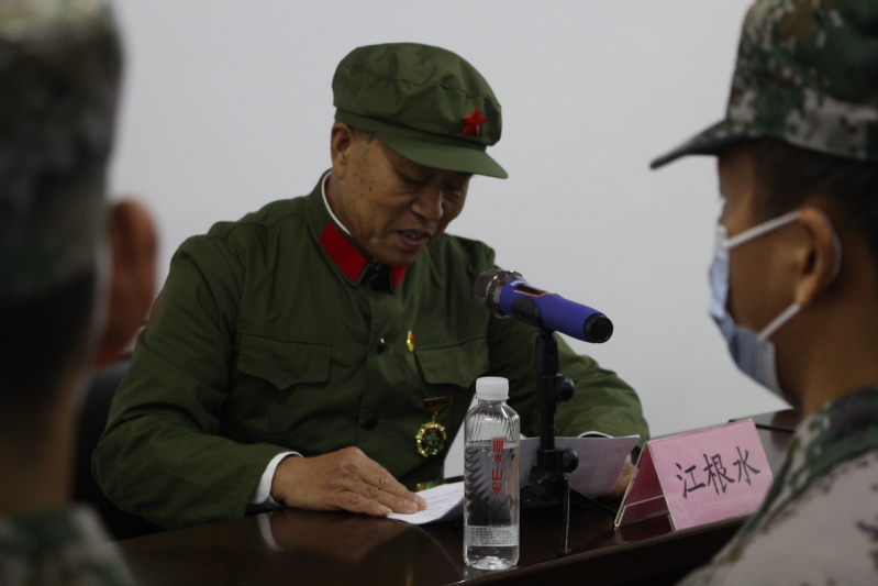 一朝戎装穿在身,终生流淌军人血。68年入伍的退役老兵江根水一身绿旧军装,朴实整齐;一副挺拔身姿,英姿飒爽。宣讲中,他动情地说道:“我是一个铁道兵,党和国家需要我的时候我将义不容辞。兵老心不老,退伍不退志,军旅生涯改变了我的一生,指引我持续前行,来生还要做一名人民子弟兵,传承革命精神,为人民服务。”宣讲团成员聆听老兵故事,为老兵的精神而动容,岁月飞逝,军旅的回忆永远躺在历史的长河中,而军旅的那份热血感动着现场的每一个人。