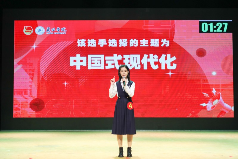 在即兴演讲环节,选手们现场抽取诸如“燃”“闪光青年”“小镇做题家”“中国式现代化”“新时代长征路”等当下网络热门词汇,围绕主题词在30秒准备时间后侃侃而谈,抒发自己的见解,选手们精彩的发挥引得现场掌声不断。