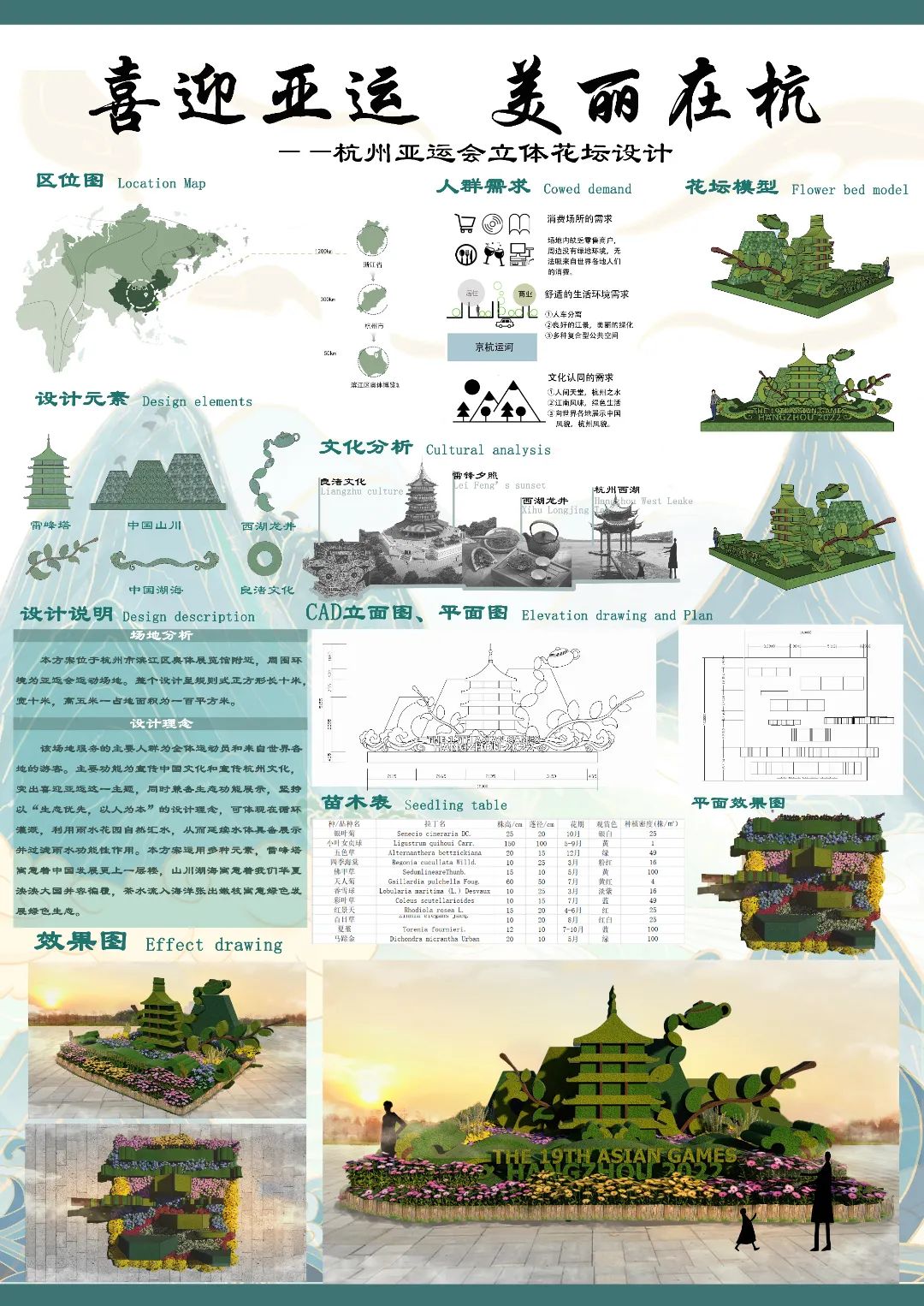 近日,杭州市园林文物局特别联合都市快报·橙柿互动推出“活力亚运·绿色杭州”——杭州首届立体花坛设计大赛获奖名单公布,我校中国青瓷学院环境设计专业20级学生邵汶雅同学设计的《喜迎亚运 美丽在杭》获专业组三等奖。