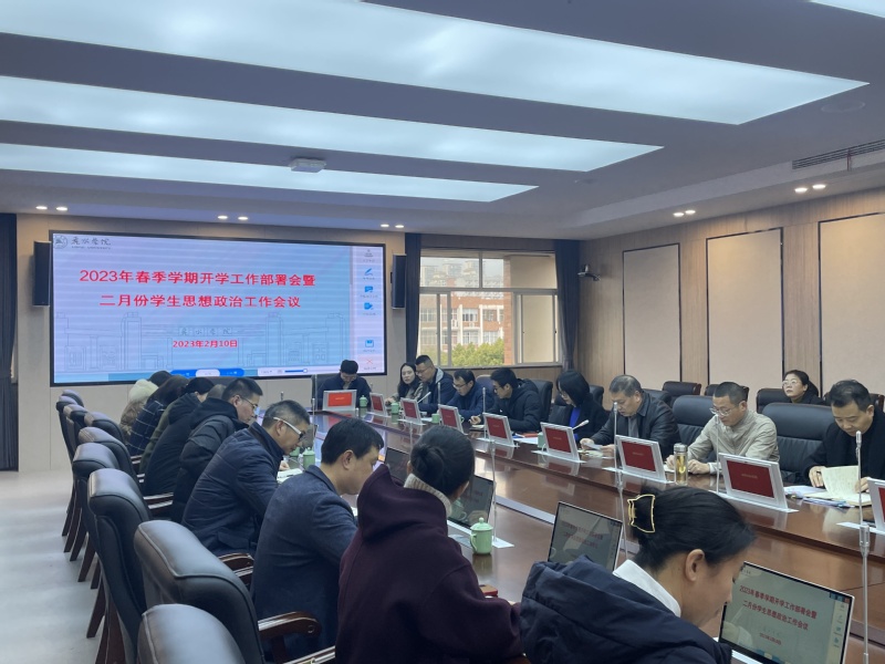2月10日上午,我校在求是楼(行政楼)五楼会议室召开2023年春季学期开学工作部署会暨二月份学生思想政治工作会议。校党委副书记叶华松主持会议并讲话,副校长彭兵出席。