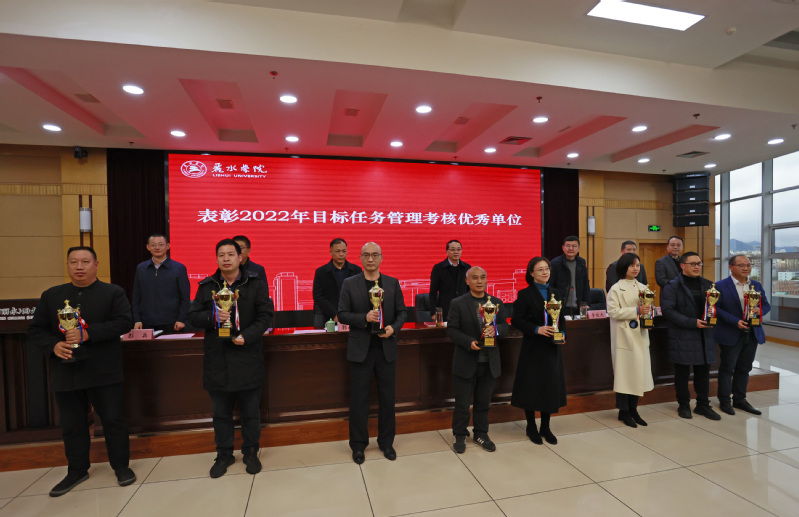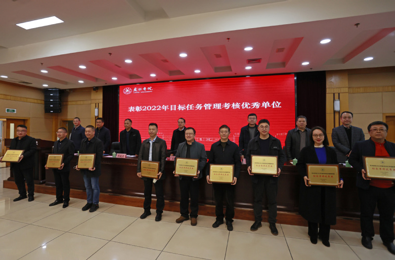 校党委书记王利琳出席会议并讲话;校长李俊杰主持会议,解读2023年党政工作要点、部署新年工作;会议表彰了2022年目标任务管理考核优秀单位。
