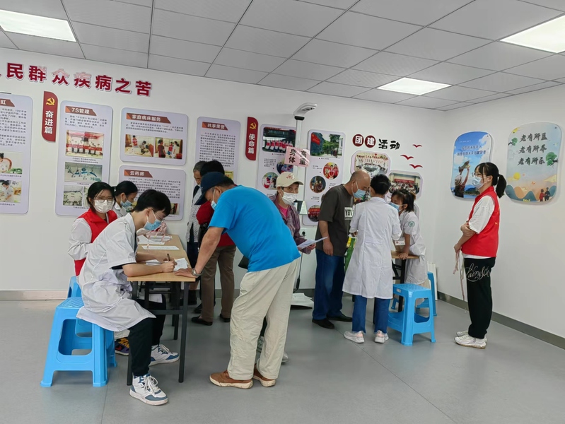 活动现场,学生志愿者热情引导居民有序地参与体检,并协助登记健康档案,方便居民日后就诊。同时协同医护人员一起为居民们问诊、测视力、测血糖、测血压,耐心解答体检居民的各种疑问,使体检工作有序进行。针对检查出有潜在疾病风险的患者,志愿者详细为其讲解各类常见病预防及日常卫生知识,倡导大家养成健康的生活方式,将温暖关怀传递到群众心中。