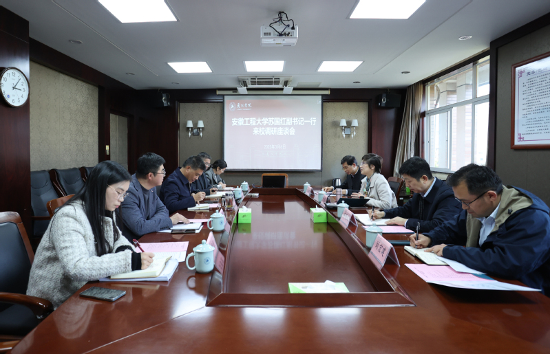 3月6日,安徽工程大学党委副书记苏国红一行来校调研,我校副校长蒋黎红出席调研座谈会。