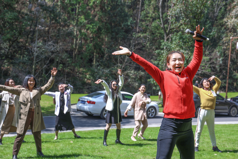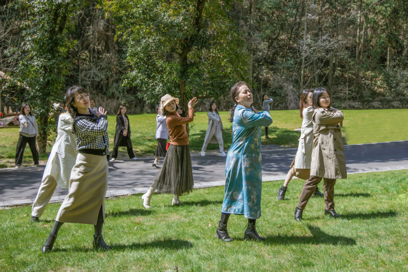 “生逢其时,重任在肩。巾帼她力量,与新时代同向同行,不负青春,不负时代,不负人民!”活动伊始,女教师们用铿锵有力的诗朗诵宣讲二十大精神,展现新时代女性的责任担当,发出新时代巾帼她力量的强音。接着,一曲《共圆中国梦》响起,女教师们在绿茵地里翩翩起舞,用欢快的舞姿抒发中华儿女用勤劳智慧实现国家富强、民族振兴,共圆中国梦的美好祝福。最后,在悠扬的萨克斯风演奏中,老师们徜徉在鸟语花香的植物园,欣赏满园春色,真切感受国家富强,人民幸福的美好生活。