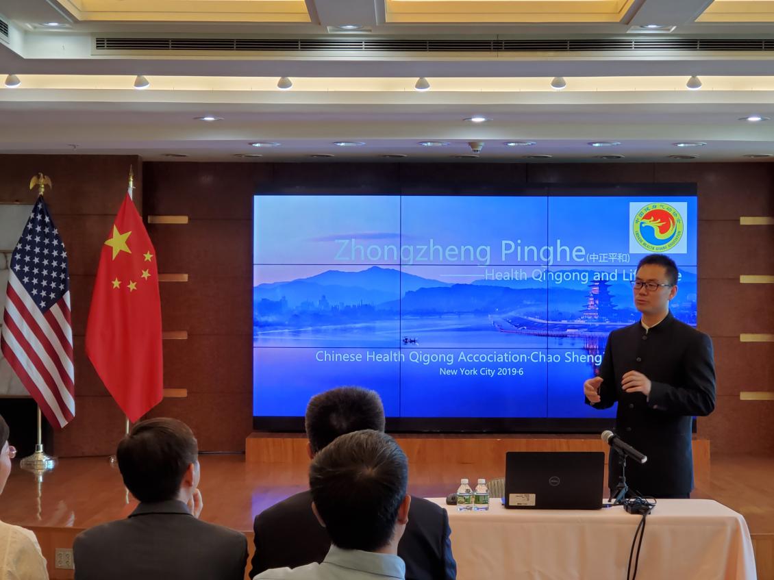 (2019年6月,晁胜杰受邀为中国驻纽约总领馆人员讲授中国生命哲学)