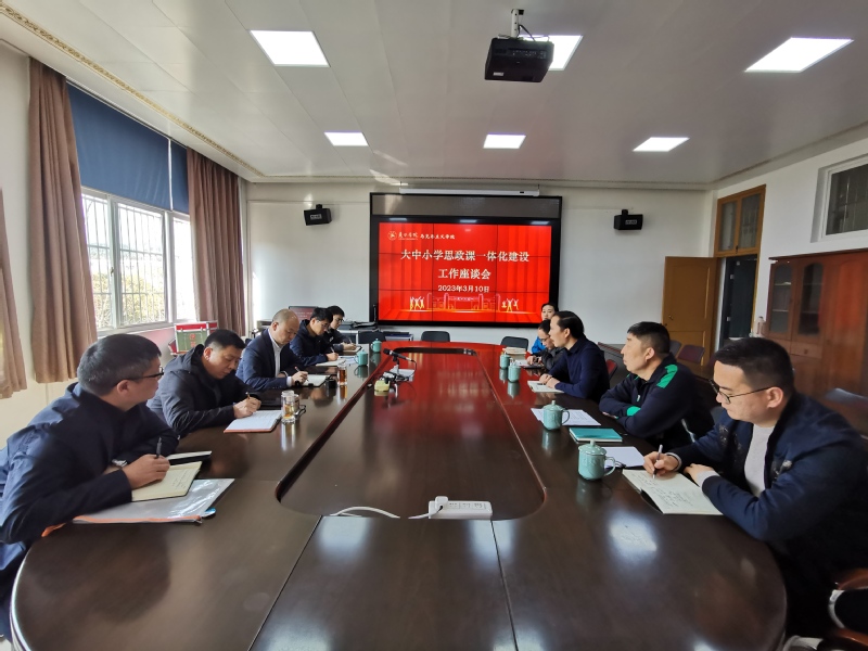 3月10日,市教育局副局长朱叶青一行来校调研大中小学思政课一体化建设工作,马克思主义学院班子成员参加座谈会。